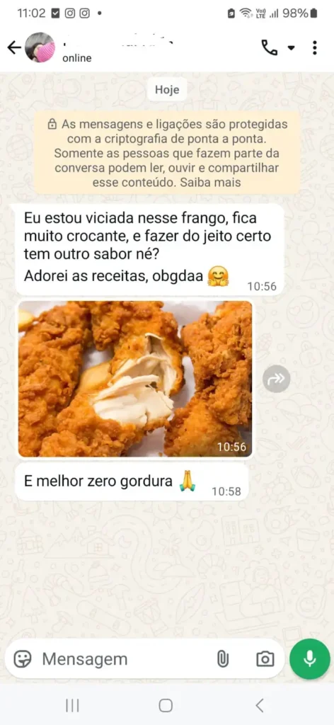 Você vai receber 4 cardápios prontos, com receitas de AirFryer testadas, rápidas e saborosas — organizadas pra você não perder tempo pensando, nem repetindo prato. Basta abrir o celular e escolher. Literalmente, em segundos.